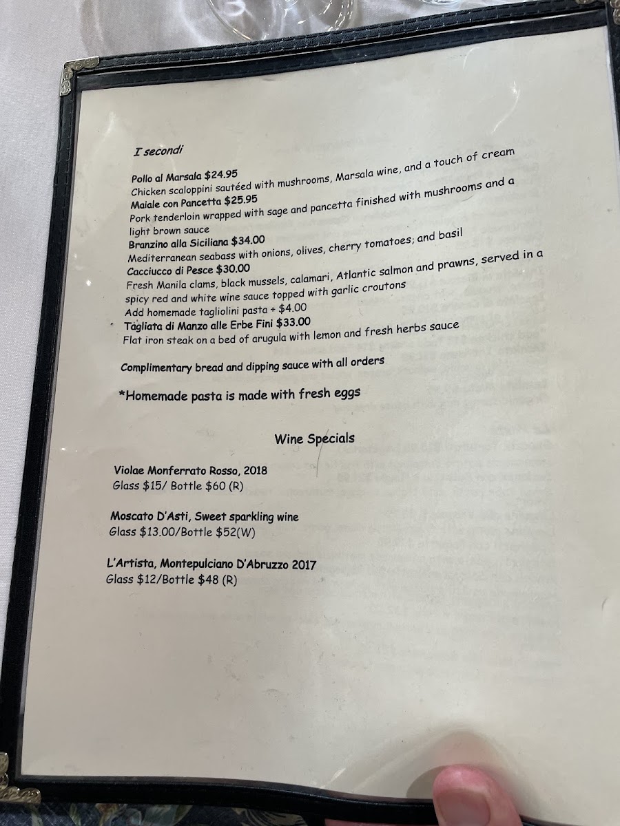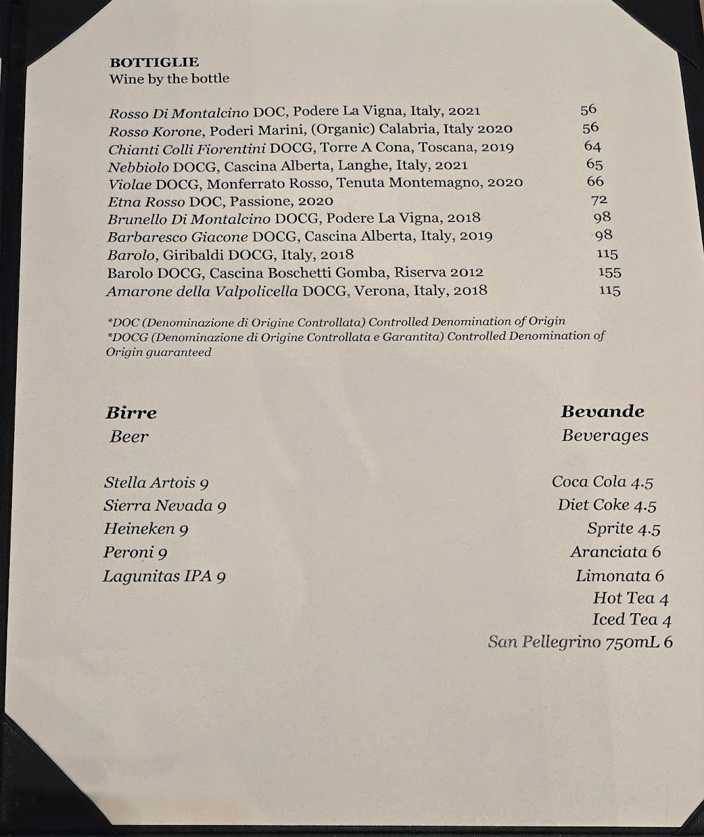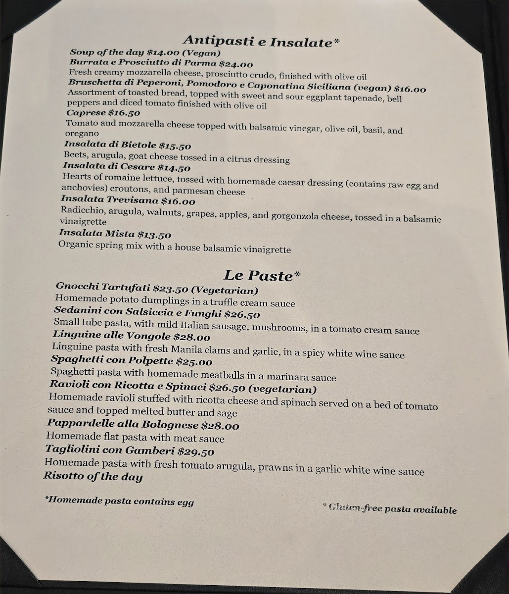 As you savor your meal, don’t forget to browse the dessert selections. The Tiramisu, a traditional delight, is an exquisite finale—layered lady fingers soaked in espresso and mascarpone, dusted with cocoa powder, all for $11. Or perhaps, indulge in the delightful Sfogliatina di Mele, where filo dough embraces warm apples and vanilla gelato, creating a heavenly experience that requires patience, as it’s made fresh to order.