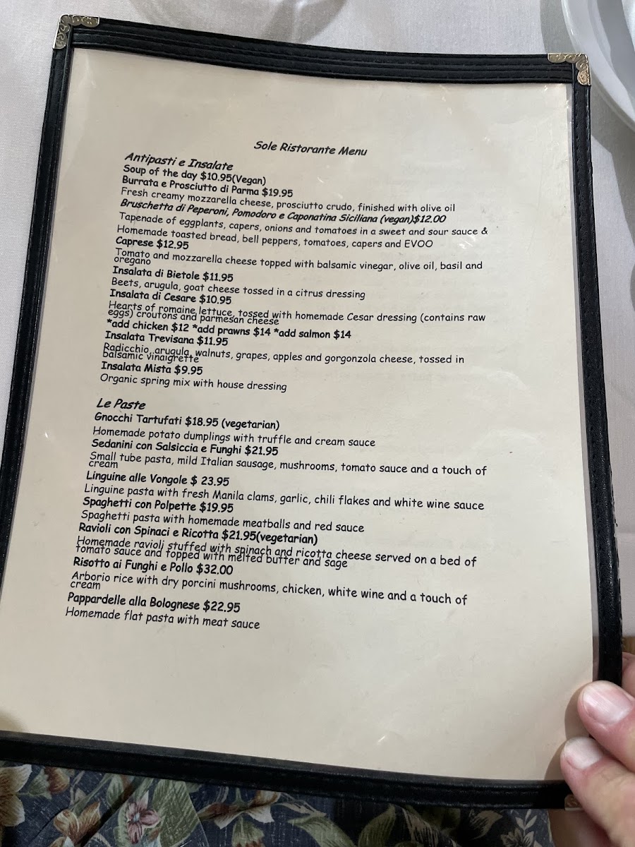 Guest reviews reflect the inviting atmosphere at Sole; A McEnroe cherishes it as her father’s favorite birthday spot, appreciating the balance in the menu that caters to both varied and familiar tastes without overwhelming diners. Furthermore, Mitch Stewart describes it as a “culinary destination tucked away on a fun little side street,” emphasizing the consistent quality of the food and the pleasant service from the attentive staff, always ready with a smile.